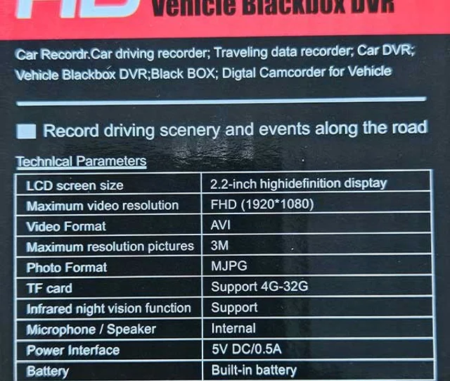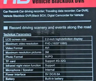 این دوربین خودرو دارای حسگر از نوع CCD است، باتری لیتیوم پلیمر دارد.
